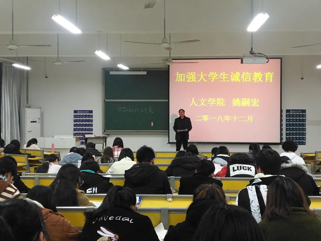 12月3日晚,漫画人 在天工南216教室举办《加强大学生诚信教育》专题讲座,由学院党总支副书记、副院长姚嗣宏主讲。