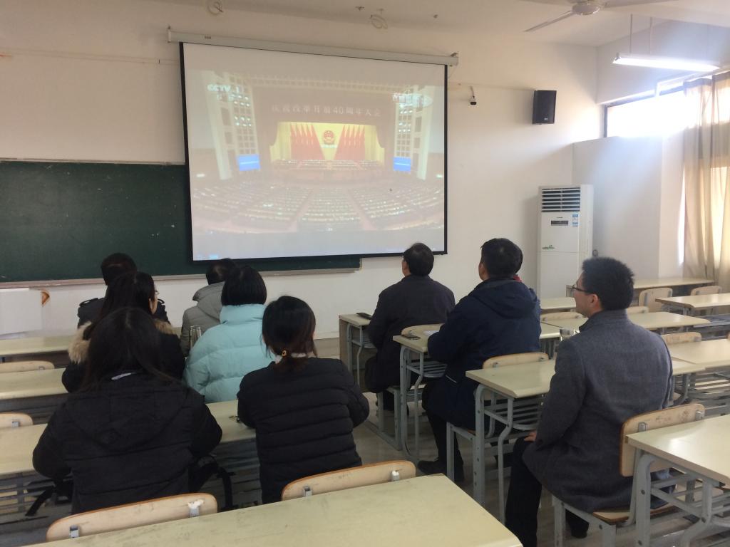 12月18日上午,漫画人 在崇智楼A333多媒体教室,组织教职工和学生集体收看了庆祝改革开放四十周年大会的实况转播。
