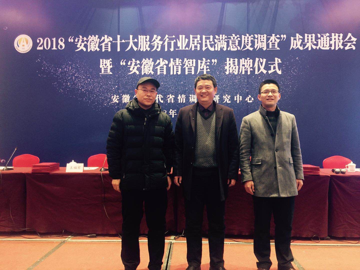 2018年12月25日,2018“安徽省十大服务行业居民满意度调查”成果通报会暨“安徽省情智库”揭牌仪式在安徽饭店举行。出席会议的省领导孟富林、王鹤龄等为“安徽省情智库”揭牌,并为首批受聘专家颁发证书。