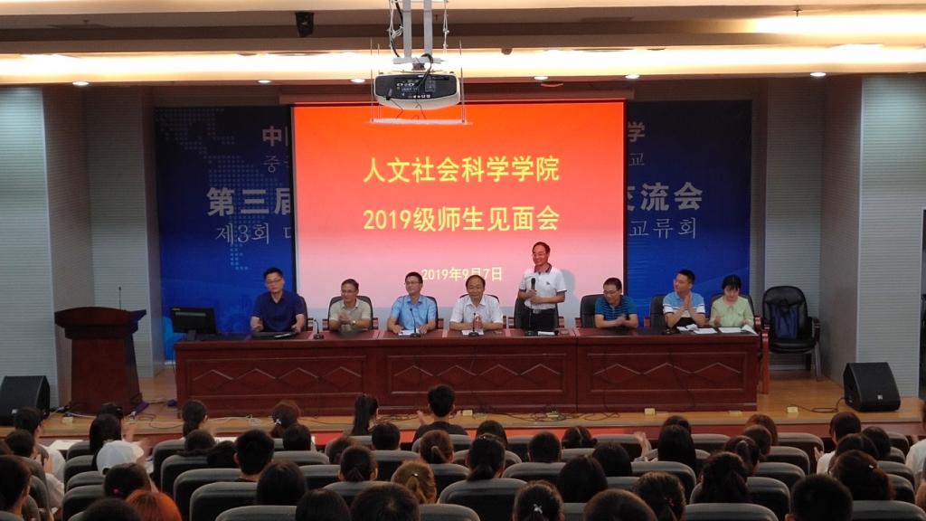 上午9点,学院领导、系主任、新生辅导员以及班主任出席学院的新生欢迎会,学院党总支书记吴云平书记讲话。他向新生们介绍了学校以及学院的历史、师资力量等情况,并对19级新生提出殷切的期望,希望同学们志存高远脚踏实地、尽快适应大学学习和生活、在更高的平台上锤炼展示自己,成为德智体美全面发展的优秀的大学生。