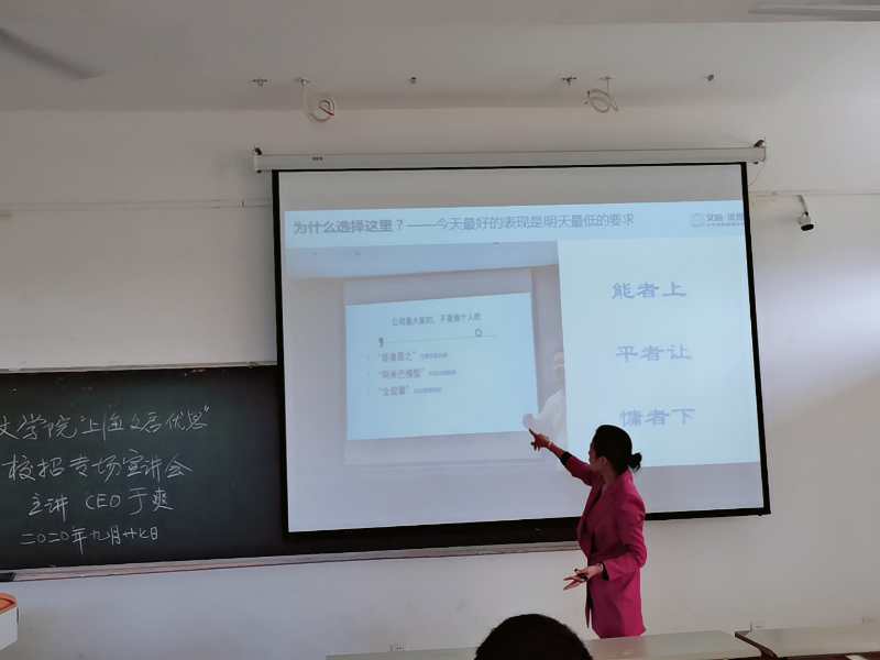 上海剑优教育科技有限公司成立于2017年1月28日,创始团队均来自于上海交通大学优秀学子,并且拥有多年教育行业经验。此次来校主要需求人文和经管类专业的毕业生。于爽与同学们分享了自己的经历、公司的漫画人、招聘和岗位需求。在场的毕业生表示出浓厚的兴趣,纷纷投递简历并与负责人进行交流。