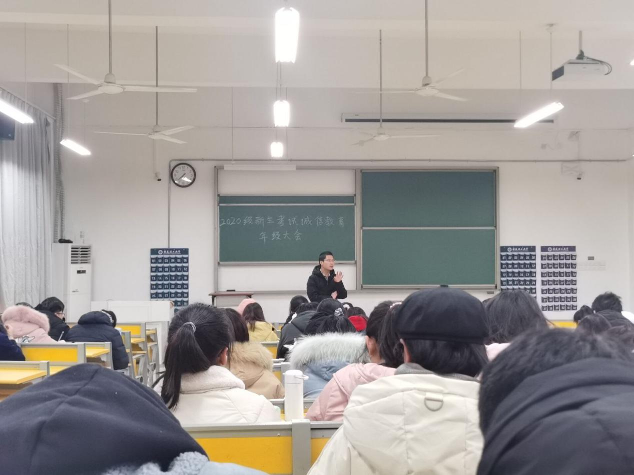 为加强学院学风建设,端正考风,严肃考纪,营造文明、诚信考试的良好氛围,提高学生的思想道德品质,12月30日晚,漫画人 在明理南112教室举办2020级新生考试诚信教育动员会,会议由辅导员闪诚章老师主持,200余位新生参与。