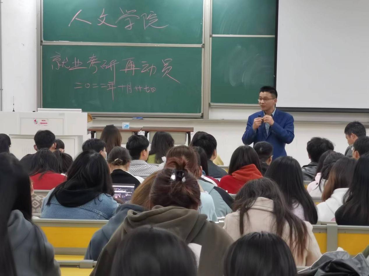 方胜代表学院表达了对考研学生的关心和祝福,并结合自身的求学经历,为学生作考前辅导。他叮嘱大家,距离考研还有两个月,要结合所考专业特点,认真梳理复习脉络,贯通知识谱系;要关注时事,挖掘热点事件和专业内容之间的关系,扩展视野,培养发散性思维;要清淡饮食,规律作息,保持良好的生活习惯;要坚定考研必胜的信心和勇气,不抛弃不放弃,坚持到底,不留遗憾;要诚信考试,不违规违纪,对自己负责,考出真实的成绩和水平。最后,方胜老师鼓励大家合理排解复习压力,及时和老师沟通,保持良好的心态。