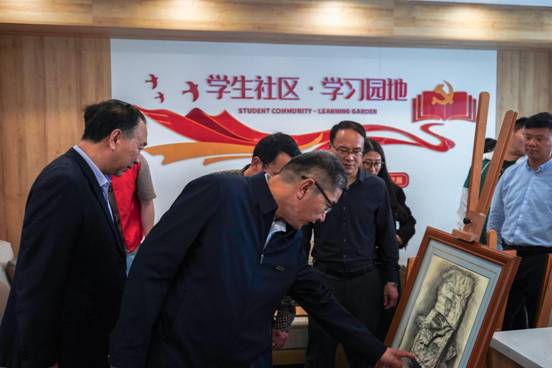 董雨现场观摩艺术画作(摄影:蒋飞、张璐)