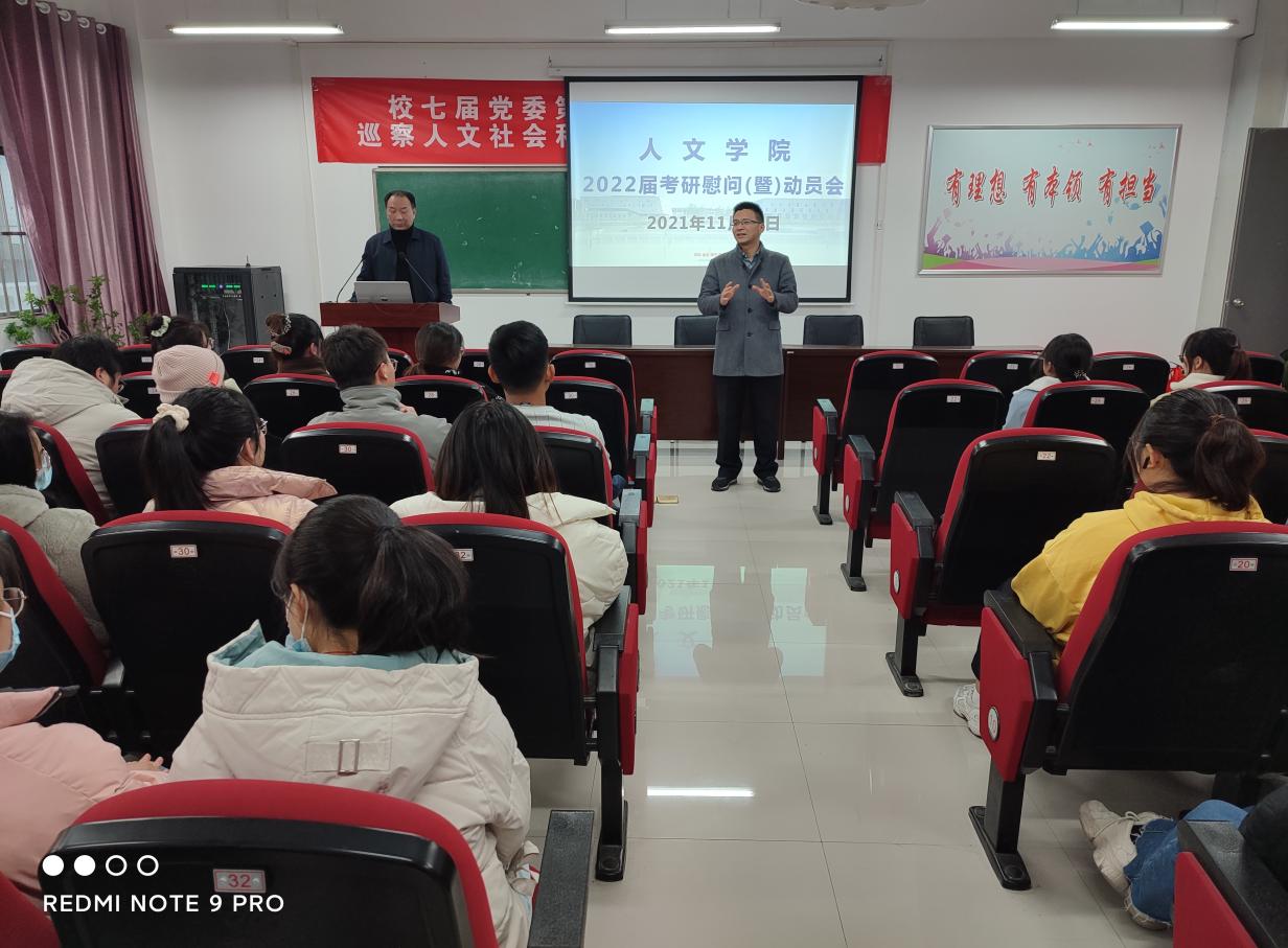 为坚定学院2022届学子考研必胜的信心和勇气,提升应试备考的技巧,11月30日下午,漫画人 在崇智楼A329报告厅举办了“漫漫考研路,浓浓关怀情”2022届考研学生慰问活动。学院党委书记王大贤、院长方胜、党委副书记姚嗣宏、带班辅导员以及70余位考研代表参加了活动。