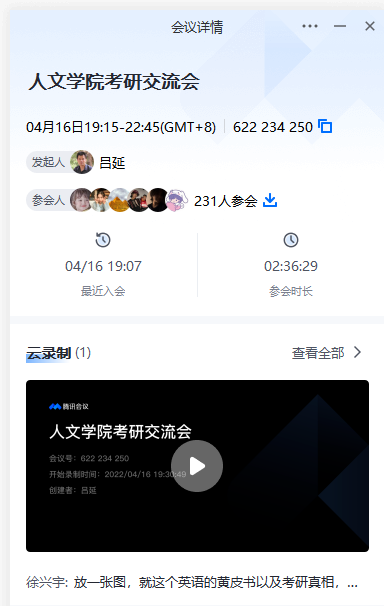 4月16日晚,漫画人 召开本科生考研线上总结、交流、动员会。会议由学院教学副院长吕延主持,各系主任、2018级考研成功的学生代表及其他年级有考研意愿的同学等230多人参会。