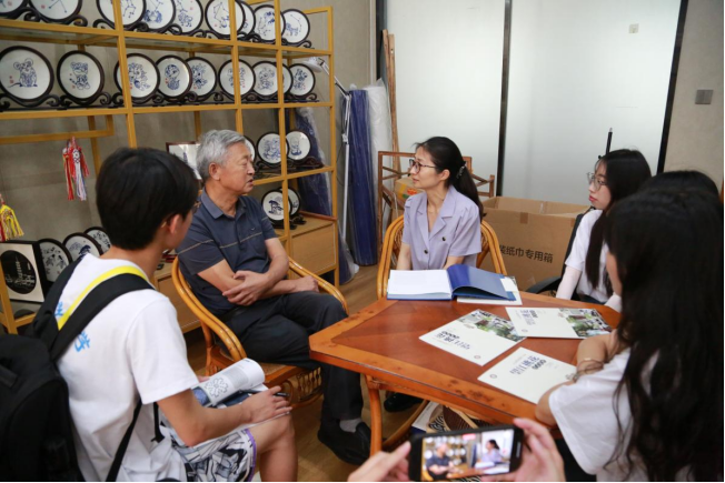 望江挑花不仅仅是一项传统的手工技艺,更是传统文化。2006年望江挑花成功进入省级代表性非物质文化遗产名录,2008年正式成为国家级代表性非物质文化遗产。为深入了解望江挑花的“前世今生”,7月15日上午,实践团队前往纺织服装新城,拜访望江挑花国家级非遗代表性传承人王世福老师。为了促进望江挑花的发展,王老师做了大量的保护和传承工作,编纂望江挑花工具书介绍挑花工艺,与服装厂合作推广挑花艺术,创建望江挑花展厅等,用挑花艺术家特有的敏锐思维、真挚的热情、灵巧的双手,探索出产、学、教相结合的新路。在采访中王世福老师特别提到:“望江挑花未来的发展需要依靠年轻人,望江挑花工艺急需设计人才,望江挑花的发展与传承离不开新鲜力量的注入,需要一代又一代的有志青年去传承,去创新,去发展。”