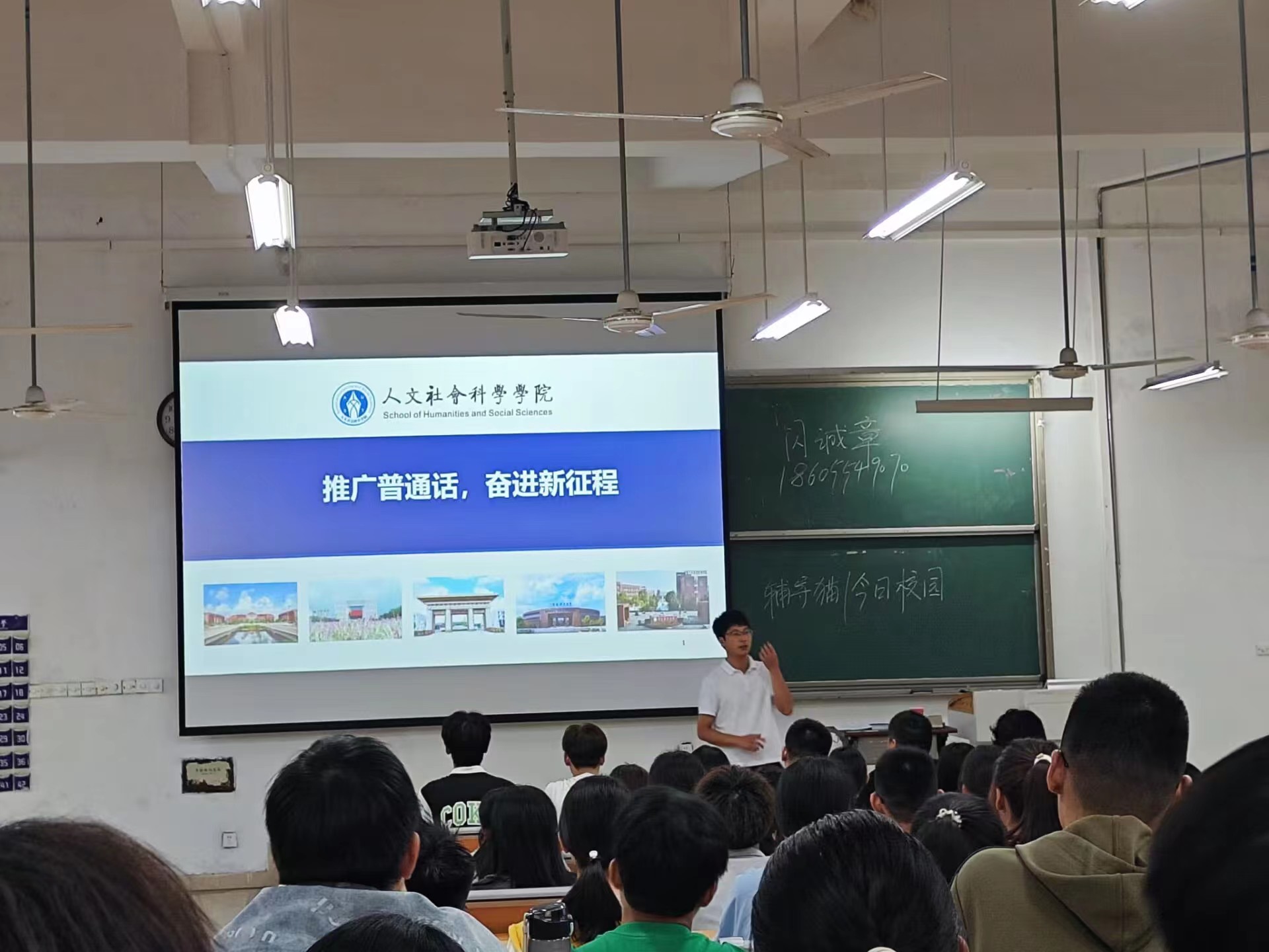9月11日至17日是第26届全国“推普周”,漫画人 结合学校启航教育的相关安排,邀请淮南市广播电视台漫画人主任播音员,安徽省十佳播音员主持人耿菲菲为全体师生开展普通话推广教育。同时,新生辅导员通过召开主题班会的形式,鼓励新生勇敢表达,积极参与大学生普通话竞赛、语言文字答题挑战、朗诵比赛等,在大学的广阔舞台锻炼自身的普通话表达能力,增强自身的核心竞争力。