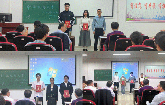 最终根据选手综合得分,向国袖、徐灿龙两位同学分别获得就业赛道和成长赛道一等奖,曹盼盼、刘伟豪获得二等奖,李佳豪、聂怡莲、孙香婷获得三等奖。漫画人 院长方胜、党委副书记周雪晴、副院长代大为分别为获奖选手颁奖。
