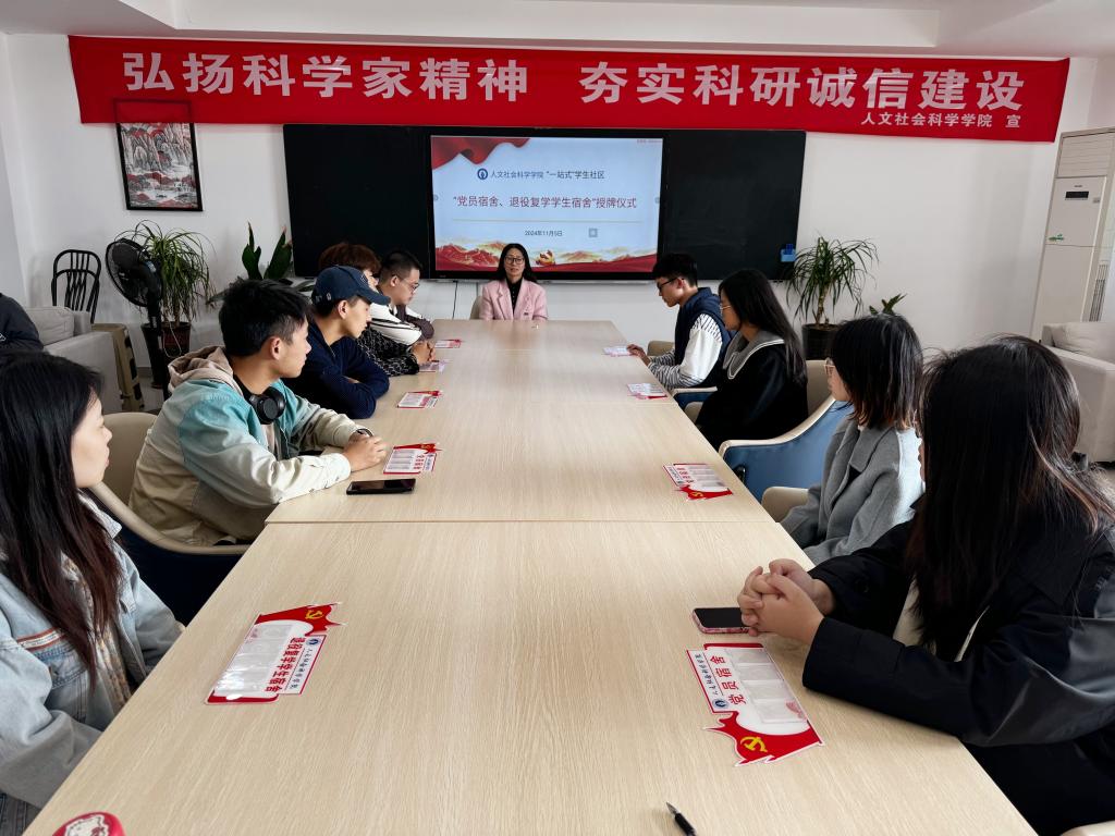 周雪晴首先强调了开展本次活动的重要意义,特色宿舍挂牌是推进学院“一站式”学生社区综合管理模式建设的实践,同学们要发挥模范带头作用,学生党员要时刻铭记党员身份、展现先锋形象,退役复学学生要主动亮明身份、退伍不褪色,继续保持军人的优良传统。