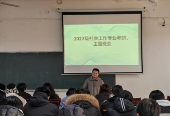 12月26日,为调动学生考研积极性,树立考研信心和决心,社会工作系在崇智楼333教室举办考研辅导动员会。会议由社会工作系主任苟延峰主持,2022级社会工作专业全体同学和部分专业教师参会。