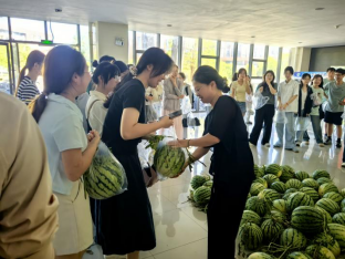 同学们手捧西瓜,脸上洋溢着笑容。大家纷纷表示,这份夏日惊喜不仅缓解了备考的疲惫,更让他们感受到学院的温暖,增添了继续奋斗的动力。“天气虽然炎热,但学院的关心就像一阵凉风,让我们更有干劲!”一位正在备战考研的学生说道。