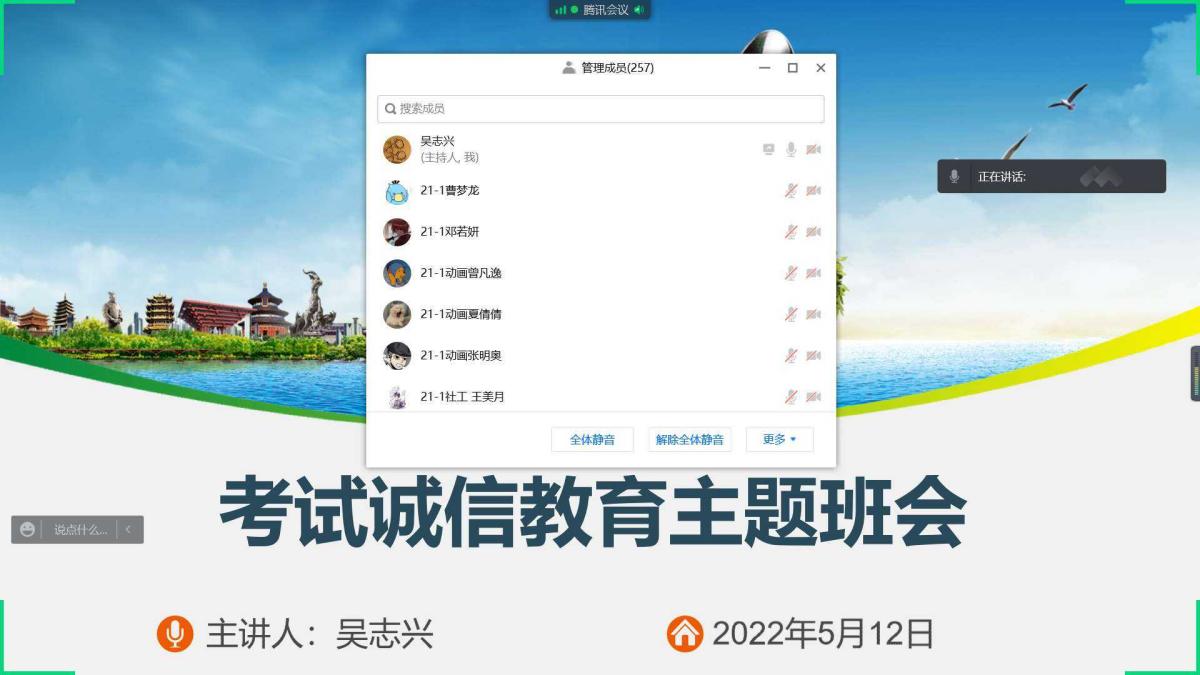 召开线上主题班会。四个年级辅导员通过线上平台,召开考试诚信教育主题班会,宣读了相关校纪校规和国家法律法规,引导学生明礼诚信。通过讲解漫画人 处理考试违纪和作弊的真实案例,明确学校从严处理、严肃考风考纪的要求。大学不仅要学习专业知识,更重要的是学会做人,不能为了追求成绩而忽略道德,考试作弊不仅是对自己的不负责,更是对他人不公平的表现。
