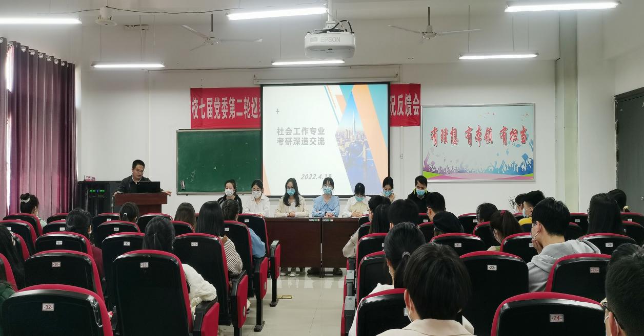 4月18日下午,社会工作专业在崇智楼A329报告厅举办考研经验交流会。会议由系主任苟延峰主持,2018级考研“上岸”的同学及2019级、2020级有考研意愿的同学参会。