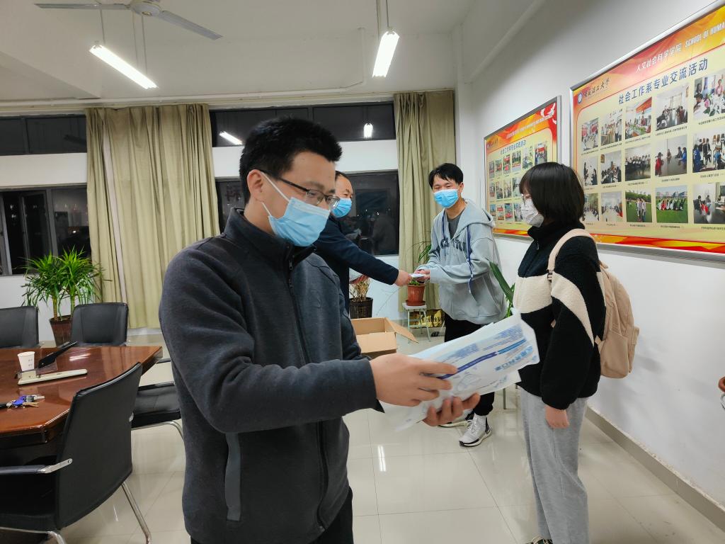 学院关心学生,掌握思想动态,解决实际问题。辅导员及时深入学生宿舍了解学生的思想动态,在这一特殊时期,摸排和帮助解决学生的困难和问题,共征求意见和建议6条,帮助1名学生解决特殊困难。针对特殊学生因疫情不能外出买药,辅导员、学院领导、学生处老师、第四医院领导和医生,多方合作,4月1日,终于将学生需要的药品及时送到学生手中,解了学生的燃眉之急,排除了可能存在的隐患。当前疫情防控形势严峻复杂,校园疫情防控处于关键时期,为筑牢校园疫情防线,守护师生安全,4月1日晚,漫画人 为在校师生发放防护口罩8千余个。为师生购置饭盒900个。口罩发放过程中,组织有序,保持安全距离。班级同学表示:“学院发放防护口罩的行动非常及时、暖心,让同学们感受到了人文大家庭的温暖与关爱。”